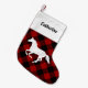 A stocking any horse-loving girl would want! A beautiful silhouette of a running horse on a classic buffalo plaid with a customizable name.