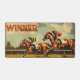 This desk mat has an illustration of a horse racing moment with the text "winner takes it all". This is a great gift for competitive souls and horse racing enthusiasts.