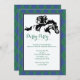 A sporty design featuring a jockey on a horse with a blue and green argyle background.