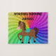"Horsing Around" kids puzzle with rainbows and personalized name.