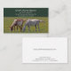 A business card displaying two horses grazing in a field. This could be used by someone who trains and breeds horses or has a horse ranch.