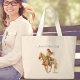 This pretty young lady seems to be trotting through the countryside on this beautiful Palomino, pondering whether to stop at the river to catch dragonflies, or gallop through the field ahead! This would be such a pretty bag to have for yourself or give as a gift that's sure to make the receiver smile every time they use it! Either way it is customizable for a name or title at the top, your choice of bag style and size, and even colour of the bag! Enjoy it!