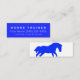 Horse themed business card in a sharp, classic shade of royal blue. This was designed for a horse trainer, but is easily tailored to suit a multitude of equine industry jobs and services. Minimal design is great for posting in feed stores, local bulletin boards, and around town. Easy to see and uncluttered for the serious, no-nonsense potential customers/clients to see and instantly know who to call