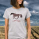 Showcase your love of horses with this design featuring a lovely running horse silhouette in dark brown The words "wild horses" are in a reddish brown colour.
