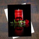 A simple memorial sympathy card for the loss of a cherished horse: a candle lit in remembrance, a rose symbolizing love, and the silhouette of a horse with birds in the background.