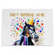 Horse themed birthday party elegant happy birthday gift bag, a horse in a party hat balloons and colourful confetti around