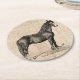 A vintage country and western themed horse with script paper background design with old fashioned illustrated art!