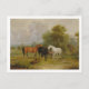 Horses Grazing: Mares and Foals in a Field (oil on Postcard