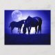 Horses Silhouettes & Moon in Blue Night - Horse Silhouettes in Night / Pop Art Horses - Farm Animals / Horses Digital Pop Art Artwork