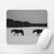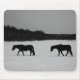 Horses On Snow - Landscape photograph in black and white of two horses walking across a snow covered field.
