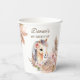 Saddle up horse cowgirl horses pony birthday party personalized paper cups, horse themed birthday party supplies. Boho pampas grass roses pastel brown colours for girls horse themed birthday party tableware, cute baby horse.