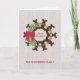 This wreath of rustic horseshoes is the perfect touch for your western or country Christmas decor. Fitted out with woven branches, green leaves, white flowers, yellow stars, and a big red bow. Extra festive for the holidays! Background is a rustic brown linen and wood and the words "Merry Christmas" are in script in the centre of the wreath. Include your family photo on the inside where there's also space for your personal message. Matching products available.