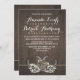 Horseshoe Baby's Breath Rustic Engagement Party Invitations - dispose d'un arrière - plan en bois rustique avec la respiration du bébé, des fer à cheval et une corde en forme de coeur noeud en vrac. Voir la collection de correspondances complète dans cette conception sur cette page.