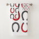 Horseshoe Good Luck Horseshoe Serviette de bain Set design original par Nisha Prabhu. Élever votre esthétique de salle de bain avec notre charmant ensemble de serviettes de bain en fer à cheval Good Luck! Combinant parfaitement style et superstition, ce design enchanteur présente l'emblématique motif en fer à cheval, symbole intemporel de chance et de protection. Les couleurs vibrantes et les motifs complexes sont sûrs d'égayer votre espace et apporter un sourire à votre visage. Offrez-le à un ami qui croit en la chance, ou offrez-vous un peu de positivité chaque jour. Parfait pour un usage quotidien ou comme cadeau spécial.