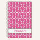 Horseshoe pattern in pink, white, green trim with custom NAME in pink. Easy to personalize text, text colour, font. Great Notebook for ANY horse lover, Barn team, Family Pet, Horseshoe, Equestrian, at ANY age. Colourful, Fun. Modern. Mix and match entire Horses / Pets / Keepsake Collections by TMCdesigns.