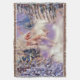 Vintage Watercolor Painting of a Woman dressed in white riding a horse in a purple pink winter scenery
