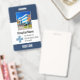 Custom Hospital Clinic Visitor Name Logo Photo Barcode Navy Blue and White Modern id Badge
