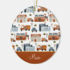 If your kid loves emergency services like police and fire, this custom red and blue Christmas ornament is perfect! Holiday ornament features a pattern of a hospital, fire station, and police station. There are also emt vehicles like a police car, firetruck, and ambulance. Ornament may be personalized with a kids name on top of a red background on the front and the year on the back. This ornament makes a great gift or stocking stuffer, especially for a little boy.