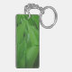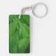 Give your favourite gardener a stylish acrylic keychain featuring a nature photograph of young hostas starting to unfurl. The new green leaves are covered with raindrops. The veins in the plant leaves appear as pale green stripes that follow the curves of the leaves.