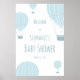 Hot Air Balloon Blue Baby Shower Welcome Poster