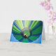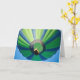 Green and blue Hot Air Balloon in the blue sky, greeting card