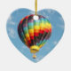 Bright ornament with photo of multi-coloured hot air balloon against the blue sky.