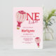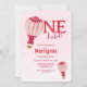 Hot Air Balloon Pink Red 1st Birthday Invitation