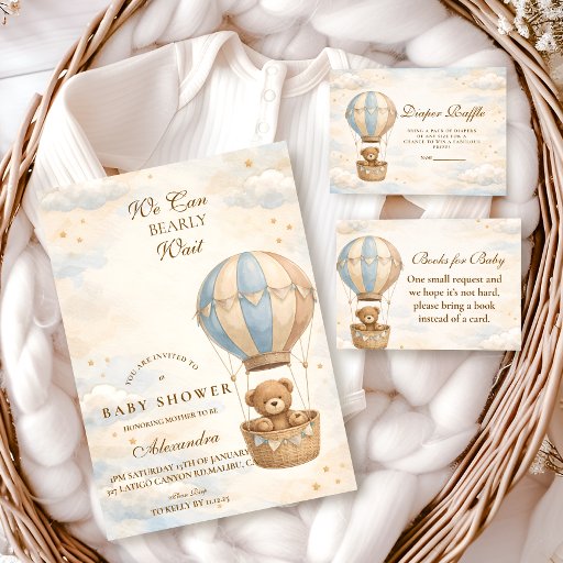 Hot Air Balloon Teddy Bear Baby Shower Invitation