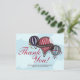 A hot air balloon thank you card in red white and blue colours. The text on the balloon says "Oh the places you will go".