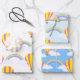 A paper sheet set designed with a hot-air balloon and rainbow pattern on a white, light blue and blue background. Customize the background colour, pattern size among other options.