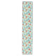 This patterned table runner features my painted illustrations of hot air balloons and white clouds against a soft blue sky. Balloons in red, yellow, green, blue and orange illustrate this table runner.