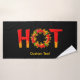 Hot with the letter O made of a flame circle with chili peppers.