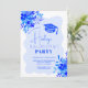 Hot blue wavy frame boho floral graduation invitation