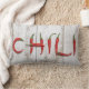 The word "CHILI" spelled in fresh, organically grown red hot chili peppers on a vintage white washed wooden background