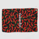Red hot chili peppers. Seamless pattern. Custom background colour. Custom text.