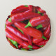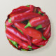 A pile of just picked fiery red hot chili peppers are spread across this round throw pillow, ready for drying, pickling, salsa or good cooking!