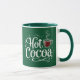 Elegant script Christmas coffee mug. The design features the text "Hot Cocoa" in white typography with white star, coffee mug and swirl accent elements. Makes for the best personalized gift for yourself, your friends, family members and even neighbours. We have 35+ more Christmas coffee mugs in our collection that you will definitely love. Please check it out and get the best Christmas gift with special wishes for your special people. Merry Christmas!