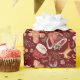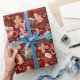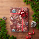 Cups of hot cocoa and a variety of gingerbread cookies create a cozy and warmhearted Christmas wrapping paper pattern. Christmas greenery, pinecones and red berries give it a rustic vibe. The gingerbread cookies are in traditional shapes of gingerbread men, reindeer and snow men. The Christmas greenery includes