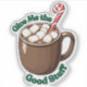 This sticker is for the hot cocoa lovers. "Give Me the Good Stuff" wraps around a cup of hot cocoa with marshmallows and a candy cane stirrer. It's a delicious treat on a cold winter night, especially during the Christmas season.