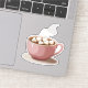 A steaming hot cup of cocoa with heart marshmallows for Valentine's Day.