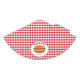 Destei's fast food illustration of a hot dog bun with a grilled sausage that has some ketchup and mustard on top. The background has a red and white colour gingham pattern. There are also two personalizable text areas.