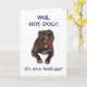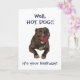 This hilarious birthday card says, "Well, Hot Dog!! It's your birthday! Have a doggone fantastic day!" This birthday card is sure to make you laugh. It shows a handsome Blue Nose Pitbull named Sarge panting with his long pink tongue sticking out and his cheeks turned up in a silly doggy smile. A perfect card for every dog lover.