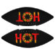 Hot with the letter O made of a flame circle with chili peppers.