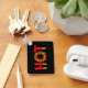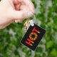Hot with the letter O made of a flame circle with chili peppers. Custom background colour. Custom text on back side.
