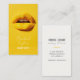 These stylish and fashion-forward business cards feature yellow 3D lips against a cool yellow backgound. The back of the card includes a contemporary set of fonts in charcoal, against a light ivory background. The design is striking and memorable and sure to make a lasting impression. This card is for the modern minimalist in the creative industry. Variations are available in other colour combinations.