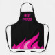 Hot Mess funny pink fire kitchen apron for women. Cute gift idea for chef cook. Personalize with your own text. Black or custom colour background. Kitchen humour design. Available in medium and large sizes. Perfect for cooking and baking. Create one for mom, wife, girlfriend etc.