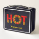 This is a standard metal lunchbox that appears to work just fine. We designed this box ourselves with an uploaded photo and custom text on the front and back. It looks absolutely beautiful except the front of the lunchbox is not centered like it shows in the photo. The print borders don't align with the inset flat part of the box where the preview photo online showed it perfectly centered in there. The back looks nice and centered though.