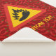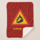 ngle warning sign with a pepper and flame silhouette over red seamless background. Custom text.
