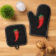 Hot Pepper Diva Drawing Custom Black Oven Mitt & Pot Holder Set