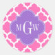 Hot Pink2 Wht Moroccan #5 Amethyst 3 Init Monogram Classic Round Sticker